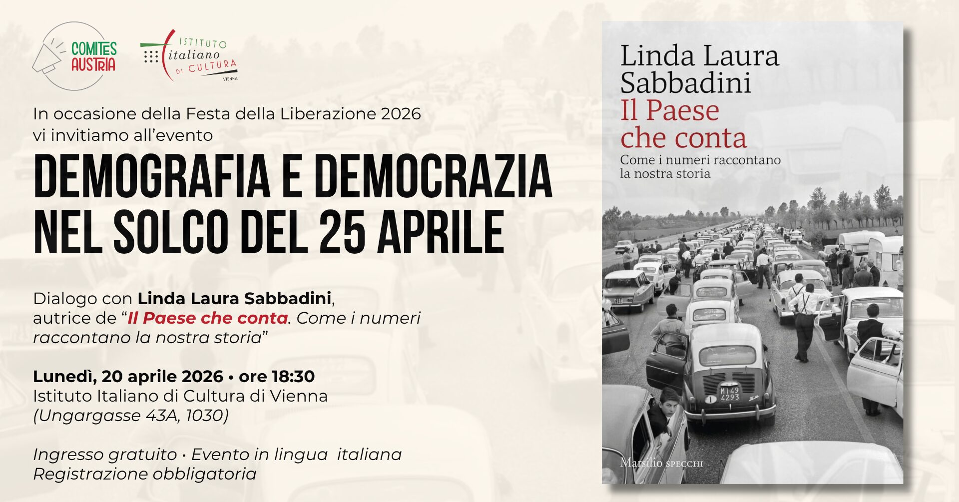 In occasione della Festa della Liberazione del 25 Aprile, il Comites Austria, in collaborazione con l’Istituto italiano di Cultura, ospita un incontro con Linda Laura Sabbadini, pioniera della statistica di genere e autrice de Il Paese che conta. Come i numeri raccontano la nostra storia.